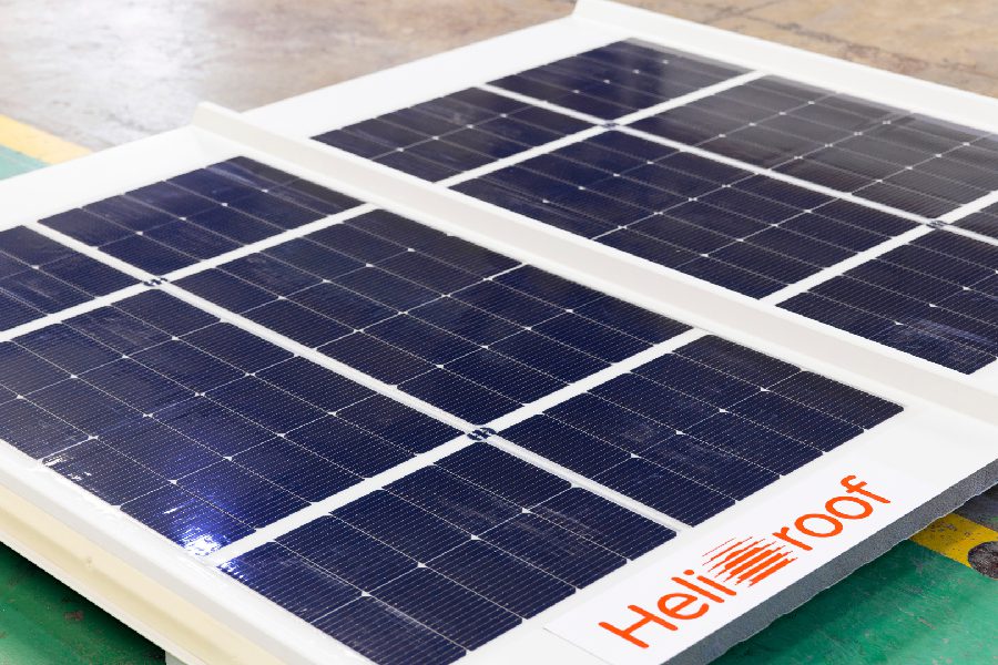 Ready-to-install and all-in-one, Helioroof® modules are custom-made, up to 12 meters in length, with an energy output of up to 2.1 kWp (kilowatt peak) per module.
