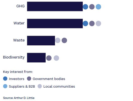 It is important to understand that sustainability elements vary in importance for stakeholders, as shown in Figure 1. For example, GHG abatement is a key concern for Western governments and global investors, as well as for clients and suppliers looking to track and reduce their own emissions. In contrast, local communities are focused on the direct impacts of mining operations on their lives, so they are much more concerned about water usage, pollution/waste, and threats to biodiversity. Failing to tackle this second group of topics can lead to disruption in daily operations at some mines, reputation damage, and/or a loss of operating licenses. Waste management failures can lead to groundwater contamination and even the collapse of tailings dams, as in the Brumadinho, Brazil, dam disaster in 2019. That incident caused 270 deaths and led to a US $19 billion loss of market value for operator Vale, including $7 billion in fines and compensation.