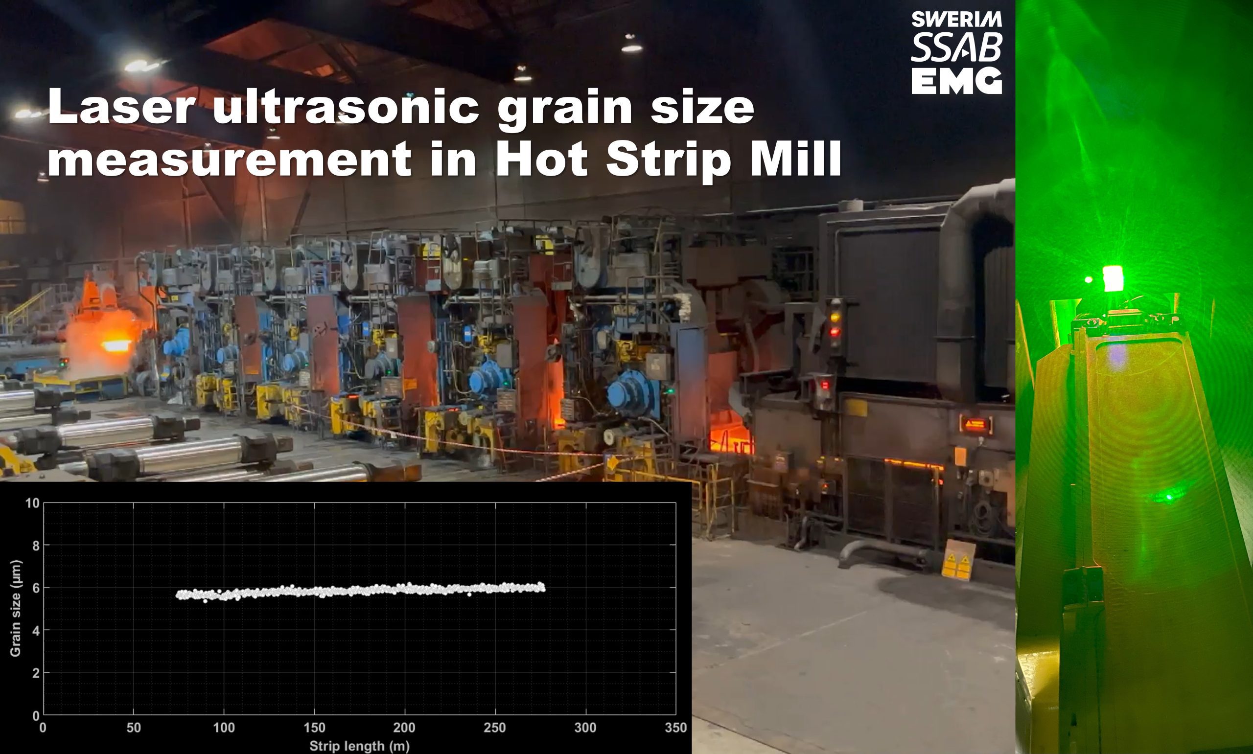 The LUS-based grain size gauge has already been installed and tested in the SSAB mill in Borlänge, Sweden. The system has demonstrated its ability to provide reliable measurements in the harsh environment of a hot strip mill. The gauge’s robust design includes optics for a long working distance of more than half a meter and suitable protection against the harsh conditions.