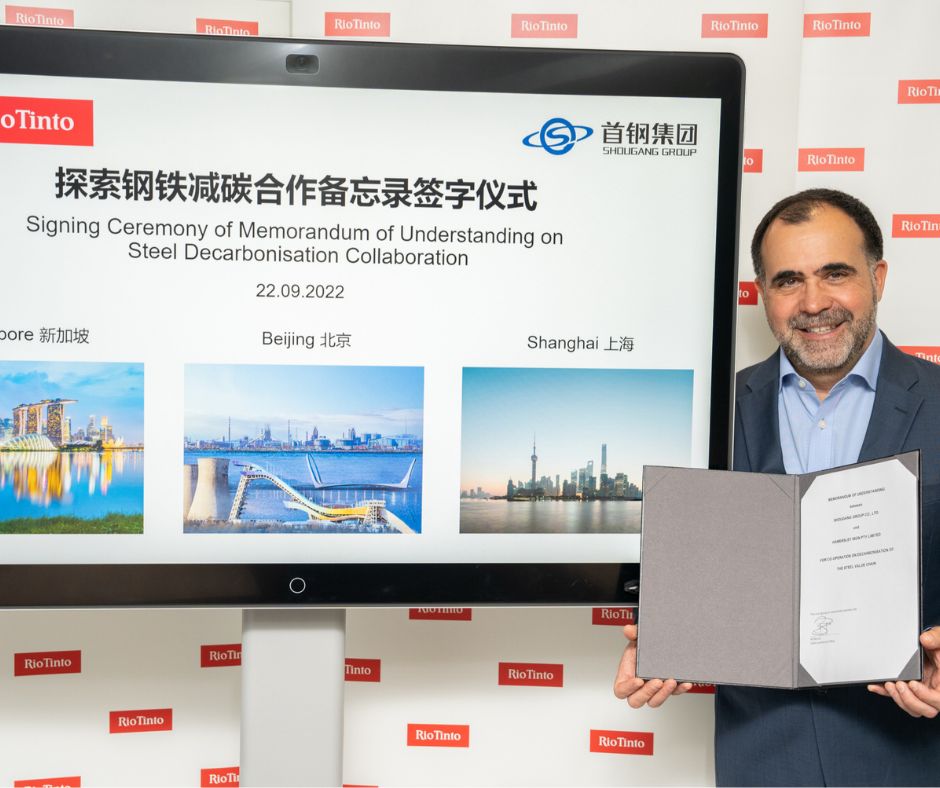 Rio Tinto and Shougang Group have signed a Memorandum of Understanding (MoU) to promote research, design and implementation of low-carbon solutions for the steel value chain.